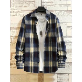Stylish Collage Chest Pocket Plaid Pattern Casual Long Sleeve Button Up Shirt, Men's Clothes For Spring Summer Fall Outdoor